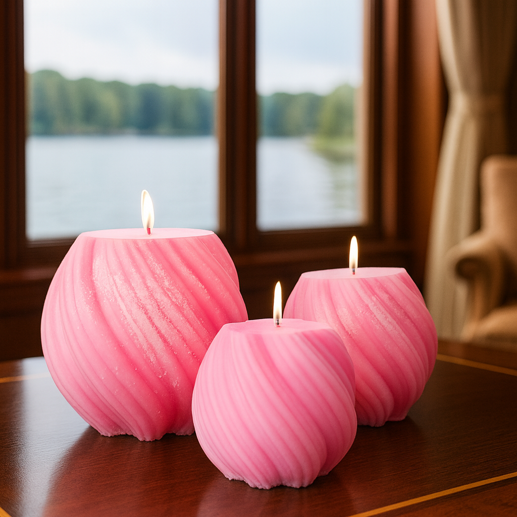 Nuestra vel artesanal en forma de esfera ondulada está elaborada a mano con cera natural, cuidando cada detalle para aportar calidez y estilo a tu hogar.